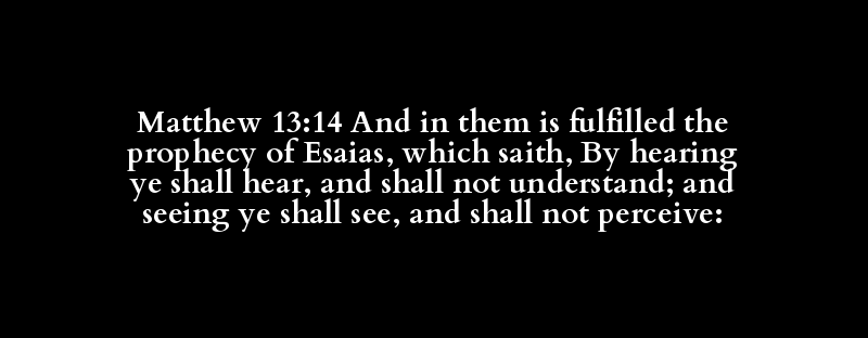 Matthew 13:14 And in them is fulfilled the prophecy of Esaias, which saith, By hearing ye shall hear, and shall not understand; and seeing ye shall see, and shall not perceive: