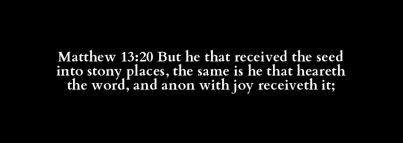 Matthew 13:20 But he that received the seed into stony places, the same is he that heareth the word, and anon with joy receiveth it;