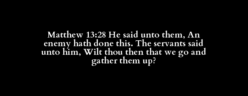 Matthew 13:28 He said unto them, An enemy hath done this. The servants said unto him, Wilt thou then that we go and gather them up?