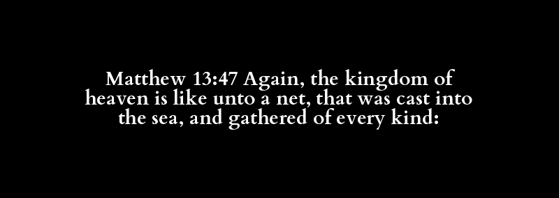 Matthew 13:47 Again, the kingdom of heaven is like unto a net, that was cast into the sea, and gathered of every kind: