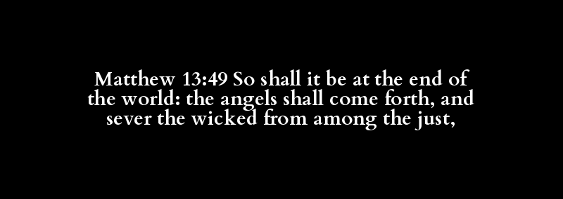 Matthew 13:49 So shall it be at the end of the world: the angels shall come forth, and sever the wicked from among the just,