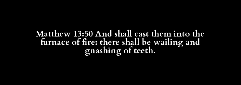 Matthew 13:50 And shall cast them into the furnace of fire: there shall be wailing and gnashing of teeth.