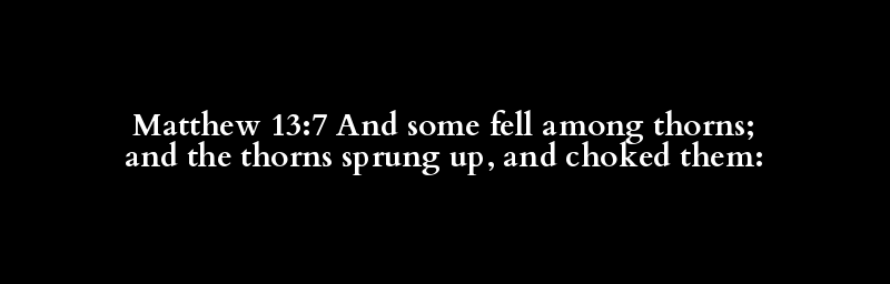 Matthew 13:7 And some fell among thorns; and the thorns sprung up, and choked them: