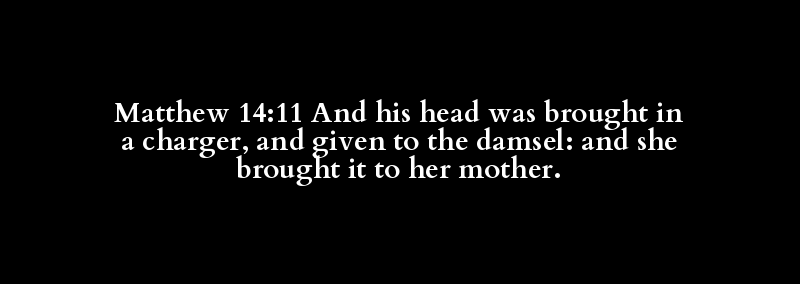 Matthew 14:11 And his head was brought in a charger, and given to the damsel: and she brought it to her mother.