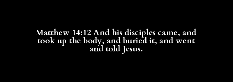 Matthew 14:12 And his disciples came, and took up the body, and buried it, and went and told Jesus.