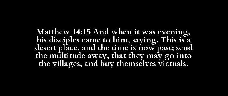 Matthew 14:15 And when it was evening, his disciples came to him, saying, This is a desert place, and the time is now past; send the multitude away, that they may go into the villages, and buy themselves victuals.