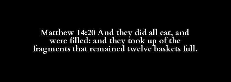 Matthew 14:20 And they did all eat, and were filled: and they took up of the fragments that remained twelve baskets full.