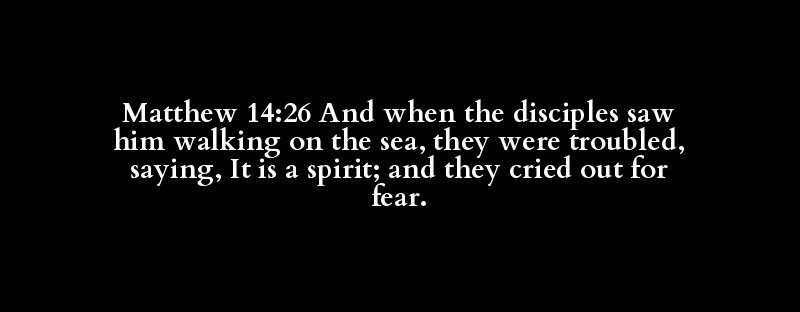 Matthew 14:26 And when the disciples saw him walking on the sea, they were troubled, saying, It is a spirit; and they cried out for fear.