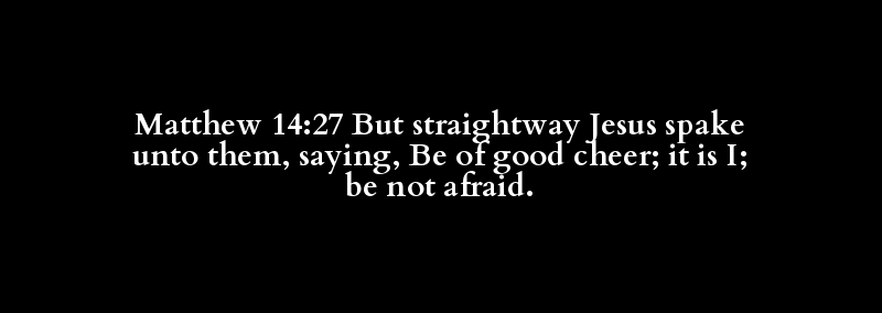 Matthew 14:27 But straightway Jesus spake unto them, saying, Be of good cheer; it is I; be not afraid.