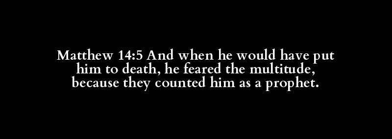 Matthew 14:5 And when he would have put him to death, he feared the multitude, because they counted him as a prophet.