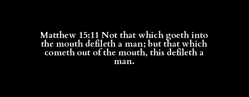Matthew 15:11 Not that which goeth into the mouth defileth a man; but that which cometh out of the mouth, this defileth a man.