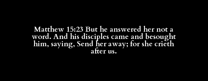 Matthew 15:23 But he answered her not a word. And his disciples came and besought him, saying, Send her away; for she crieth after us.