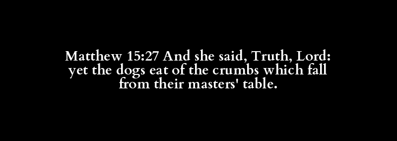 Matthew 15:27 And she said, Truth, Lord: yet the dogs eat of the crumbs which fall from their masters' table.