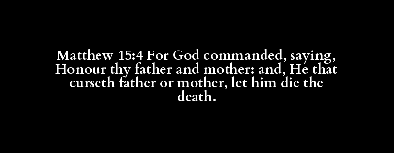 Matthew 15:4 For God commanded, saying, Honour thy father and mother: and, He that curseth father or mother, let him die the death.