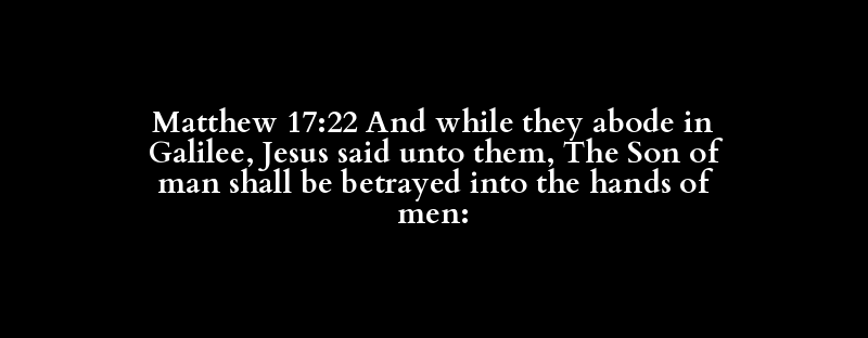 Matthew 17:22 And while they abode in Galilee, Jesus said unto them, The Son of man shall be betrayed into the hands of men:
