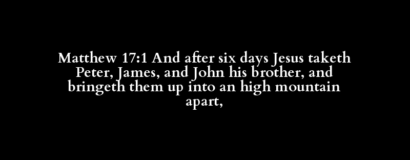 Matthew 17:1 And after six days Jesus taketh Peter, James, and John his brother, and bringeth them up into an high mountain apart,