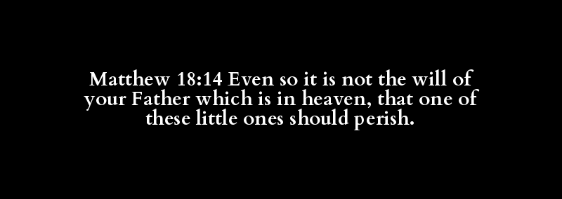 Matthew 18:14 Even so it is not the will of your Father which is in heaven, that one of these little ones should perish.