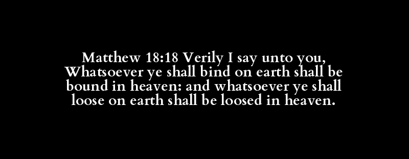 Matthew 18:18 Verily I say unto you, Whatsoever ye shall bind on earth shall be bound in heaven: and whatsoever ye shall loose on earth shall be loosed in heaven.