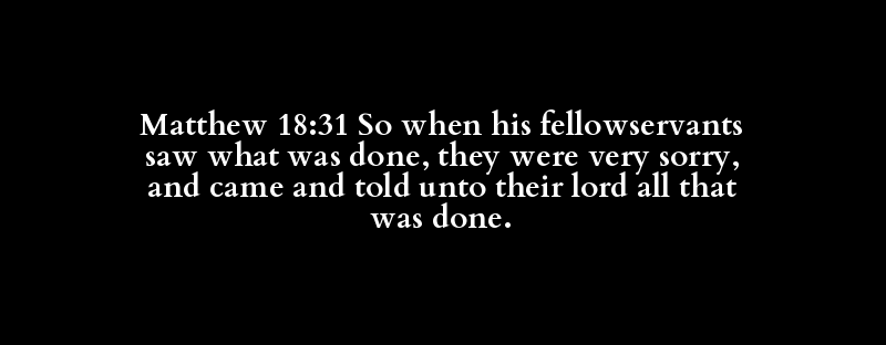 Matthew 18:31 So when his fellowservants saw what was done, they were very sorry, and came and told unto their lord all that was done.