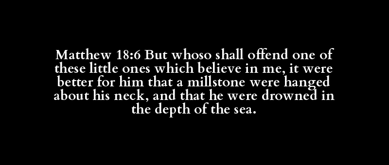 Matthew 18:6 But whoso shall offend one of these little ones which believe in me, it were better for him that a millstone were hanged about his neck, and that he were drowned in the depth of the sea.