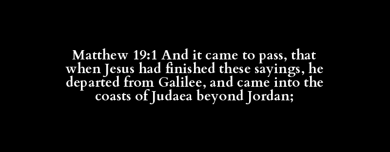 Matthew 19:1 And it came to pass, that when Jesus had finished these sayings, he departed from Galilee, and came into the coasts of Judaea beyond Jordan;