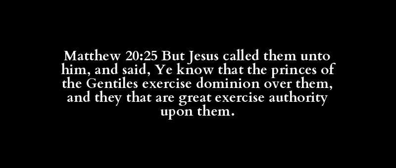 Matthew 20:25 But Jesus called them unto him, and said, Ye know that the princes of the Gentiles exercise dominion over them, and they that are great exercise authority upon them.