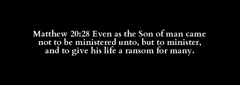 Matthew 20:28 Even as the Son of man came not to be ministered unto, but to minister, and to give his life a ransom for many.