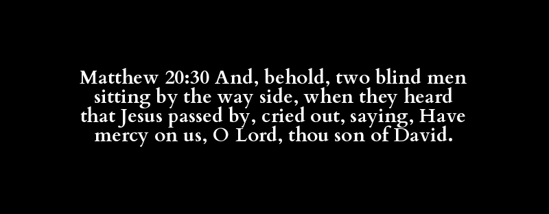 Matthew 20:30 And, behold, two blind men sitting by the way side, when they heard that Jesus passed by, cried out, saying, Have mercy on us, O Lord, thou son of David.