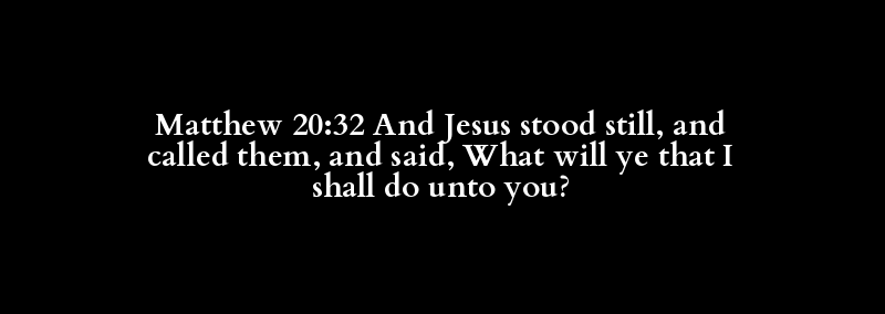 Matthew 20:32 And Jesus stood still, and called them, and said, What will ye that I shall do unto you?