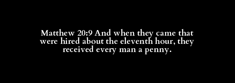 Matthew 20:9 And when they came that were hired about the eleventh hour, they received every man a penny.