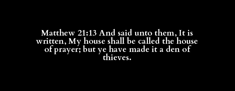 Matthew 21:13 And said unto them, It is written, My house shall be called the house of prayer; but ye have made it a den of thieves.