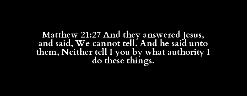 Matthew 21:27 And they answered Jesus, and said, We cannot tell. And he said unto them, Neither tell I you by what authority I do these things.