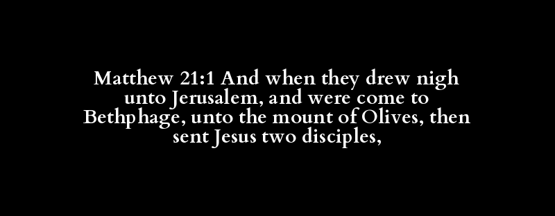 Matthew 21:1 And when they drew nigh unto Jerusalem, and were come to Bethphage, unto the mount of Olives, then sent Jesus two disciples,