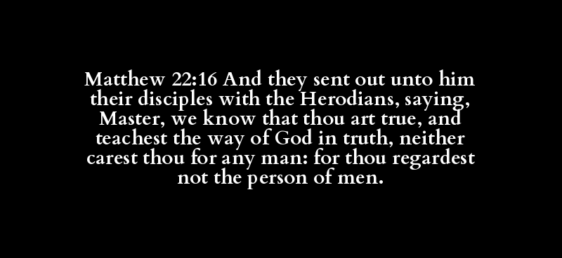 | [kai] | [apostello] | [autos] | [autos] | [mathetes] | [meta] | [Herodianoi] | [lego] | [didaskalos] | [eido] | [hoti] | [ei] | [alethes] | [kai] | [didasko] | [hodos] | [theos] | [en] | [aletheia] | [kai] | [ou] | [melo] | [soi] | [peri] | [oudeis] | [gar] | [blepo] | [ou] | [eis] | [prosopon] | [anthropos] |