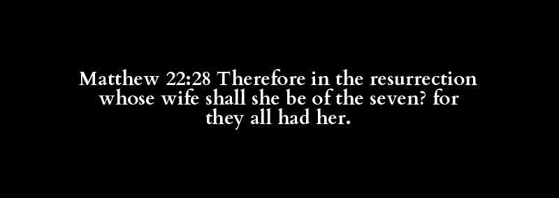 Matthew 22:28 Therefore in the resurrection whose wife shall she be of the seven? for they all had her.