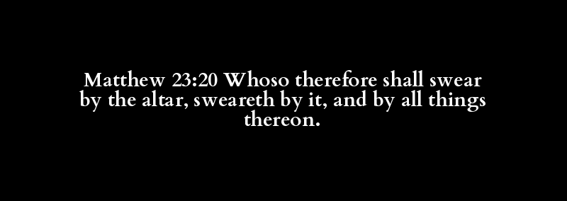 Matthew 23:20 Whoso therefore shall swear by the altar, sweareth by it, and by all things thereon.
