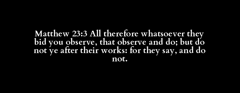 Matthew 23:3 All therefore whatsoever they bid you observe, that observe and do; but do not ye after their works: for they say, and do not.