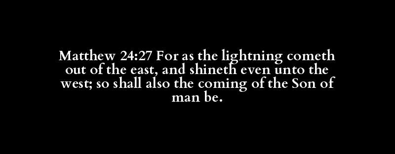 Matthew 24:27 For as the lightning cometh out of the east, and shineth even unto the west; so shall also the coming of the Son of man be.