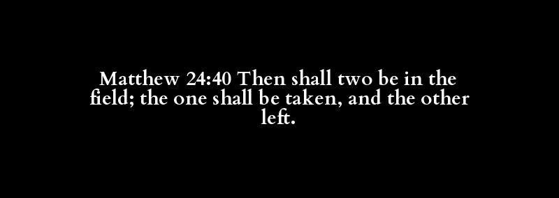 Matthew 24:40 Then shall two be in the field; the one shall be taken, and the other left.