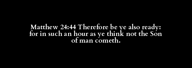 Matthew 24:44 Therefore be ye also ready: for in such an hour as ye think not the Son of man cometh.