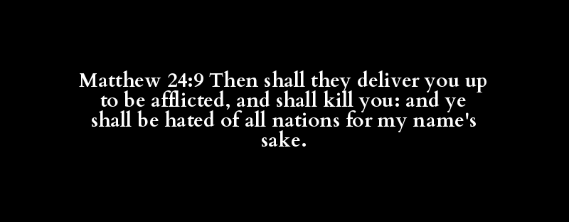 Matthew 24:9 Then shall they deliver you up to be afflicted, and shall kill you: and ye shall be hated of all nations for my name's sake.