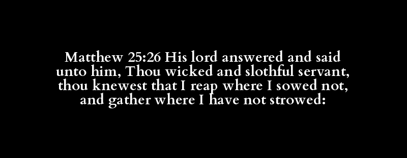 | δέ | αὐτός | κύριος | ἀποκρίνομαι | ἔπω | αὐτός | πονηρός | καί | ὀκνηρός | δοῦλος | εἴδω | ὅτι | θερίζω | ὅπου | σπείρω | οὐ | καί | συνάγω | ὅθεν | διασκορπίζω | οὐ | διασκορπίζω |