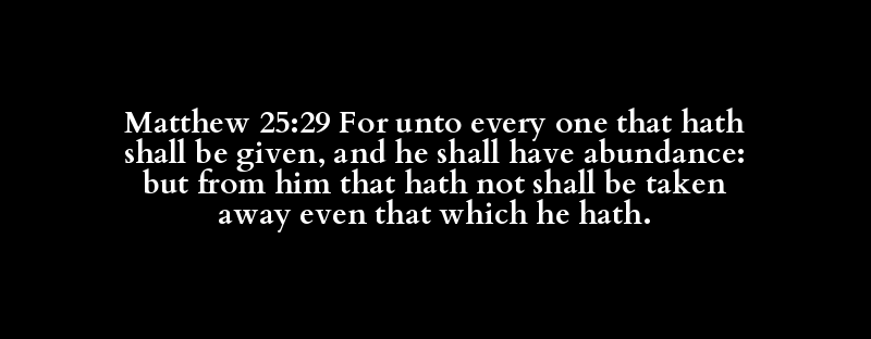 Matthew 25:29 For unto every one that hath shall be given, and he shall have abundance: but from him that hath not shall be taken away even that which he hath.