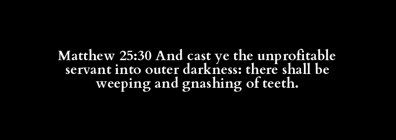 Matthew 25:30 And cast ye the unprofitable servant into outer darkness: there shall be weeping and gnashing of teeth.