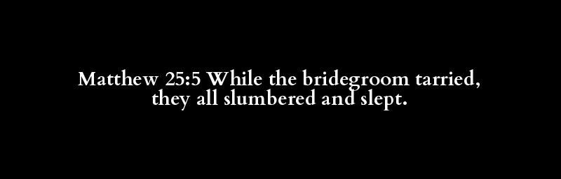 Matthew 25:5 While the bridegroom tarried, they all slumbered and slept.
