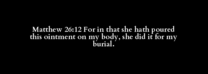 Matthew 26:12 For in that she hath poured this ointment on my body, she did it for my burial.
