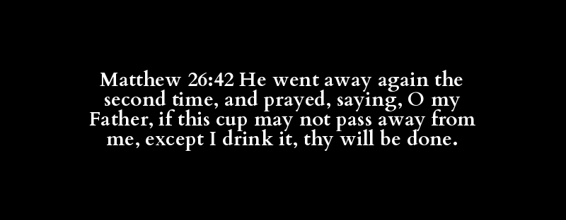 Matthew 26:42 He went away again the second time, and prayed, saying, O my Father, if this cup may not pass away from me, except I drink it, thy will be done.