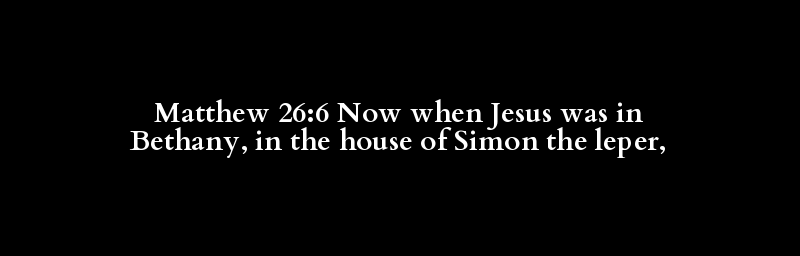 Matthew 26:6 Now when Jesus was in Bethany, in the house of Simon the leper,