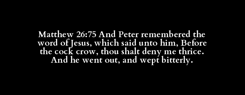 Matthew 26:75 And Peter remembered the word of Jesus, which said unto him, Before the cock crow, thou shalt deny me thrice. And he went out, and wept bitterly.