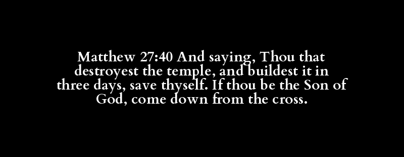 Matthew 27:40 And saying, Thou that destroyest the temple, and buildest it in three days, save thyself. If thou be the Son of God, come down from the cross.